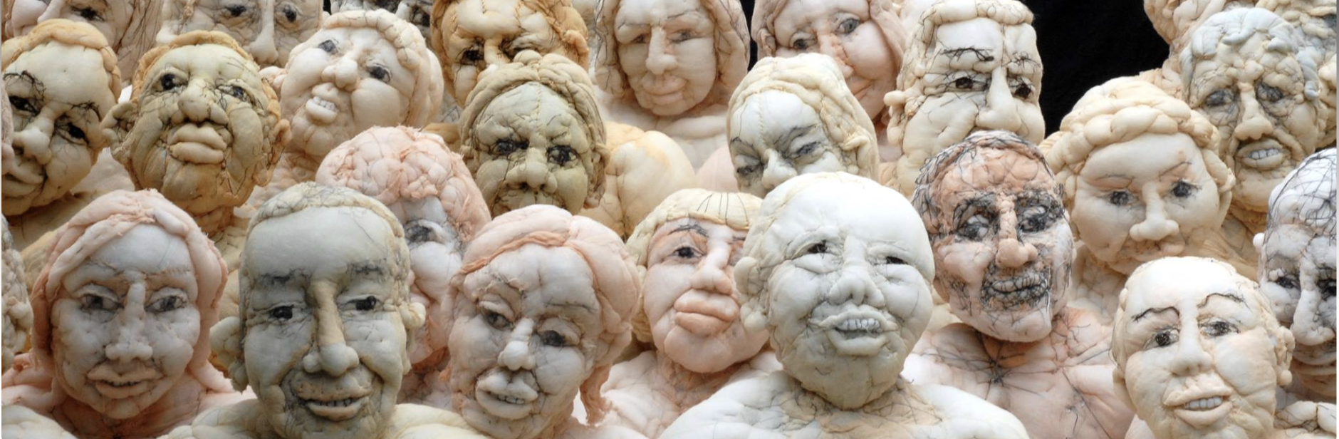 Avec de la ouate et du tissu , je modèle mes sculptures, mes personnages. Comme une Parque, à force de points, de nœuds, de brides, de reprises, je fais apparaître un corps, pas un corps en gloire, mais un corps commun à tous avec ses défauts et ses petites imperfections, loin des images médiatiques. Le choix de l'échelle à taille humaine confère aux sculptures un effet de miroir renvoyant le spectateur à lui même.