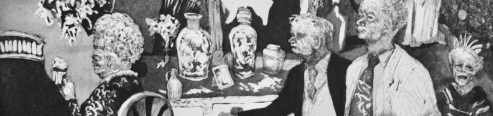 Mortiaux. L'œil est entraîné dans un carrousel indocile d'où débordent les chairs, les regards et les peaux. Devant un tel charivari, les voyeurs ne feront pas la fine bouche. On est sous les tropiques ou en Sibérie, peut-être au paradis, peut-être en enfer. Les scènes indifférentes qui s'emboîtent comme dans un kaléidoscope halluciné rappellent l'irrévérence d'un Rops et la truculence de Ensor. Le trait du graveur namurois est fin et délicat comme s'il n'avait qu'à effleurer la plaque de cuivre pour faire naître ces visions intranquilles.